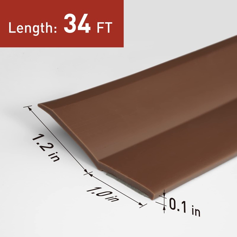 FOSLUOC Garage Door Seal Top and Side Seal Strip 34FT Brown Adhesive Backed Rubber Weather Stripping Replacement Weatherproofing Universal Sealing