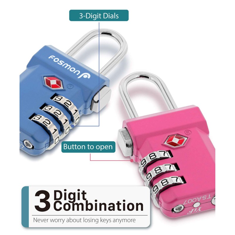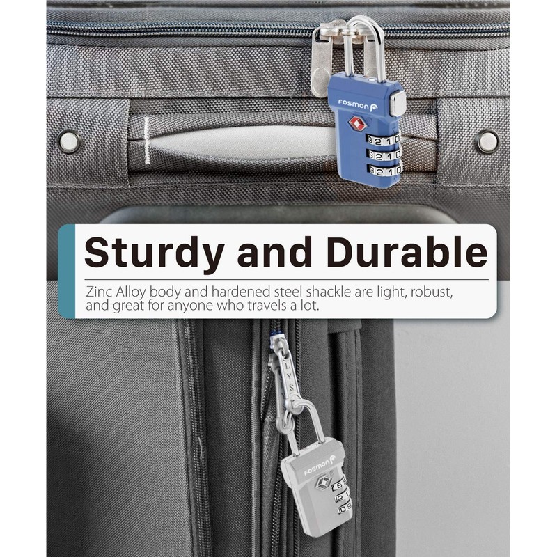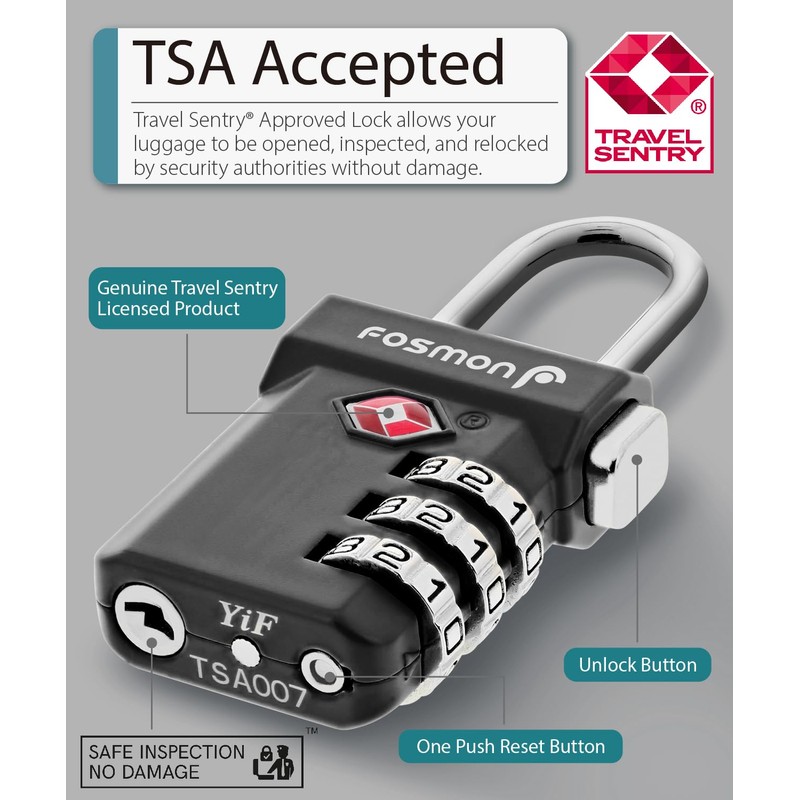 - Cerraduras de equipaje aprobadas por TSA: el bloqueo Fosmon TSA permite que tu equipaje sea inspeccionado sin dañar la cerradura. El agente de la TSA abrirá y volverá a bloquear tu equipaje después de la inspección, dándote algo de mente durante todo el viaje.