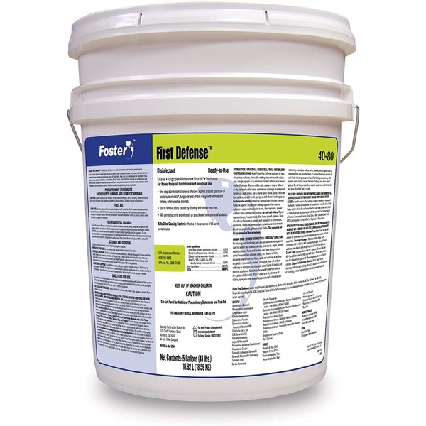 Foster First Defense 40-80 Disinfectant Cleaner. For Home, Hospital, Institutional and Industrial Use. Deodorizes and Cleanses Most Surfaces. 5 GL Bucket with Handle.
