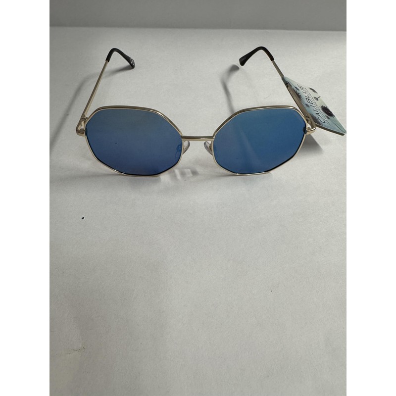 Foster Grant Caliblue Hexagonal Sunglasses with Blue Mirrored Lenses, Gold Metal Frame