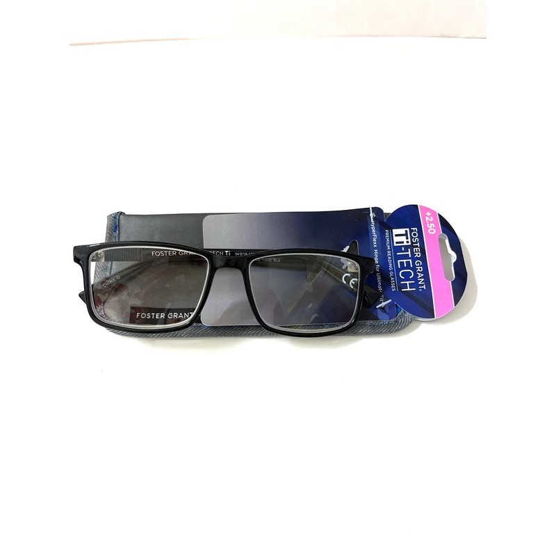 Foster Grant reading glasses, Ti- tech Ti-200 hyper flexx hinge rectangular black +2.50
