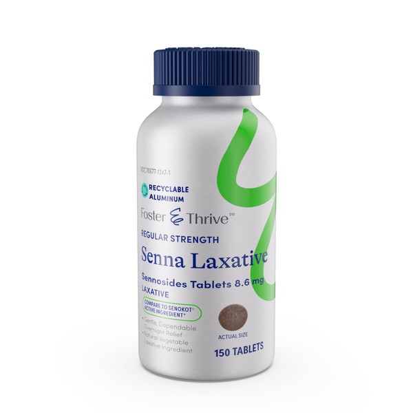 Foster & Thrive Senna Laxative, 150 Tablets, Natural Vegetable Ingredients, Day and Overnight Bowel Relief for Constipation, Bloating, Irregularity, Comparable to Senokot-S