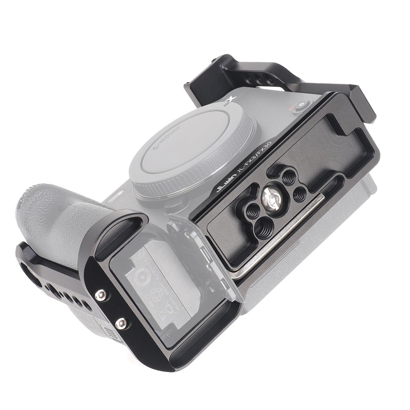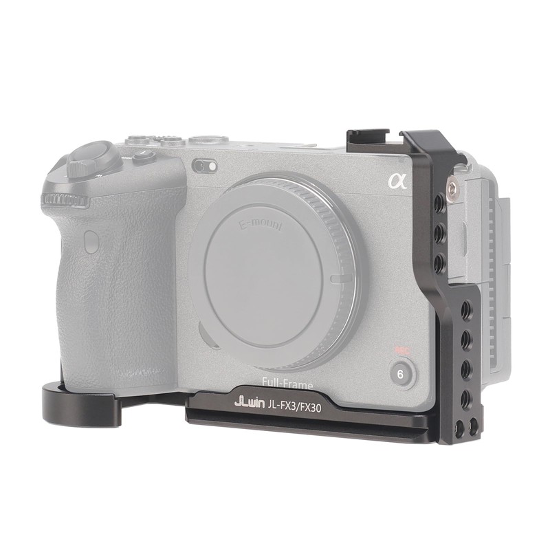 CNC Aluminum Camera Cage is specifically designed for Sony FX30/FX3 camera. It is lightweight and perfectly form-fitting the camera. It is equipped with a large number of 1/4"-20 threaded holes, 3/8"-16 locating holes for Arri, and cold shoe for accessories mounting.