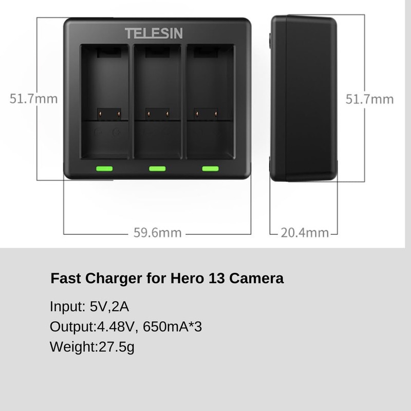 Fotleey Fast Charging Battery Charger for GoPro Hero 13 Supports 3 Batteries Charging Over Current Protection