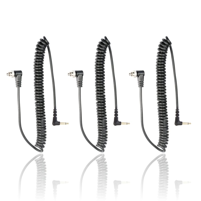 Foto&Tech 3.5 mm to Male Flash PC Sync Cable, 14 Inch Coiled Cord with Screw Lock, Compatible with Nikon Canon and Most DSLR Cameras PocketWizard Plus III Plus II Mini Phone PC1 (3 Pieces)