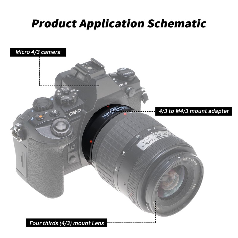- Compatible with 4/3 lens to M4/3 (MFT/Micro Four Third) mount camera. Supports autofocus function; Exif transfer; manual aperture control.