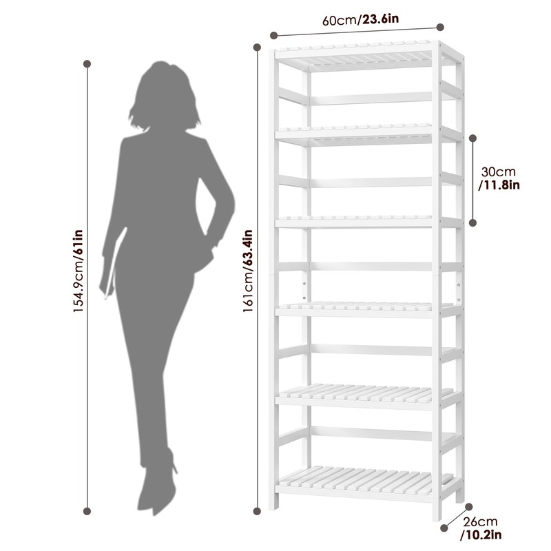 - 6-tier Large Capacity: With a size of 23.6*10.2*63.4 inches (60*26*161cm), this 6-tier bamboo shelf has a large capacity to hold most of your kitchenware, toiletries, books, plants, and so on, which is a perfect storage shelf unit that can meet your daily storage and display needs.
