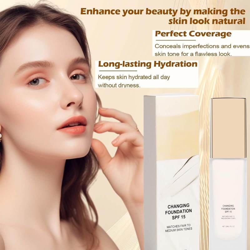 Foundation Color Changing,Farbwechselnde Foundation für reife Haut, Feuchtigkeitsspendende Foundation Make Up,Changing Foundation,Leichte Langanhaltende Foundation, Leistungsstarker Concealer SPF15