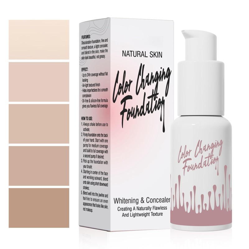 • Natural concealer: With the help of a natural formula with strong coverage, colour-changing foundation can be used for facial impurities such as dark circles, red spots, uneven skin tone, etc. Effective coverage. Foundation colour changing ensures an even and shiny skin tone.