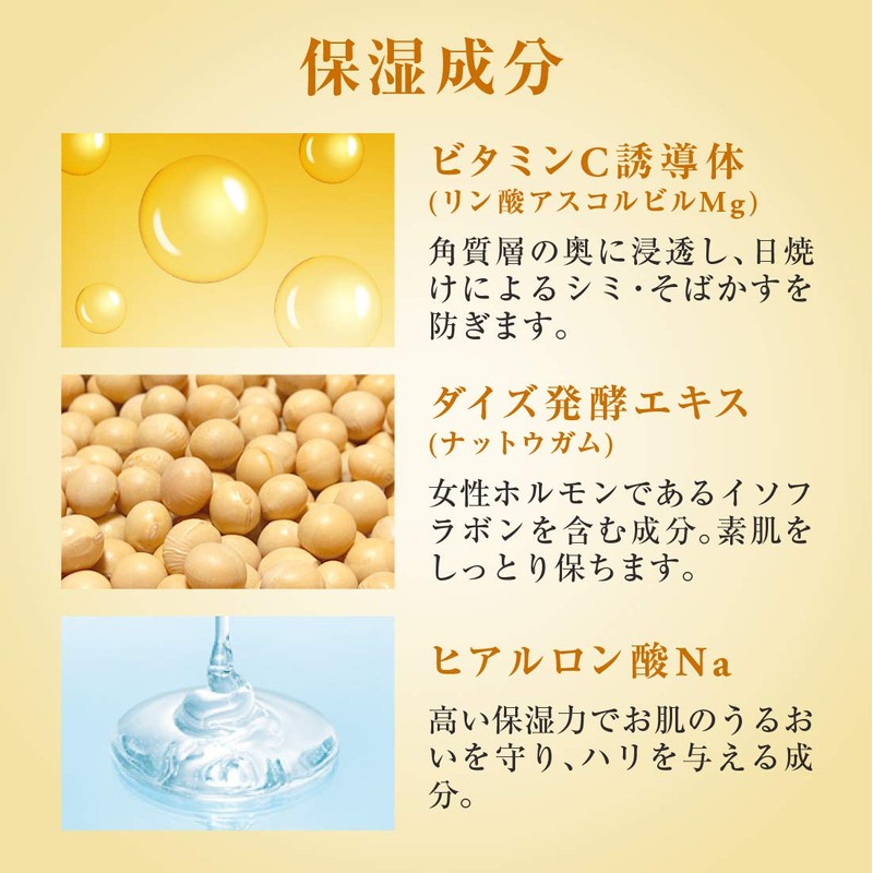 - Moisturizing Ingredients: Vitamin C derivative (Ascorville Phosphate Mg) Dyed Fermentation Extract (Nutugum), Sodium Hyaluronic Acid