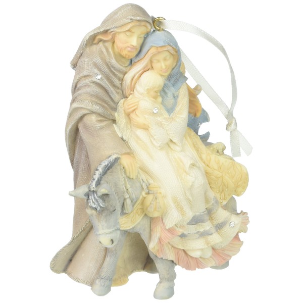 Foundations Holy Family with Donkey Stone Resin Ornament, 4”