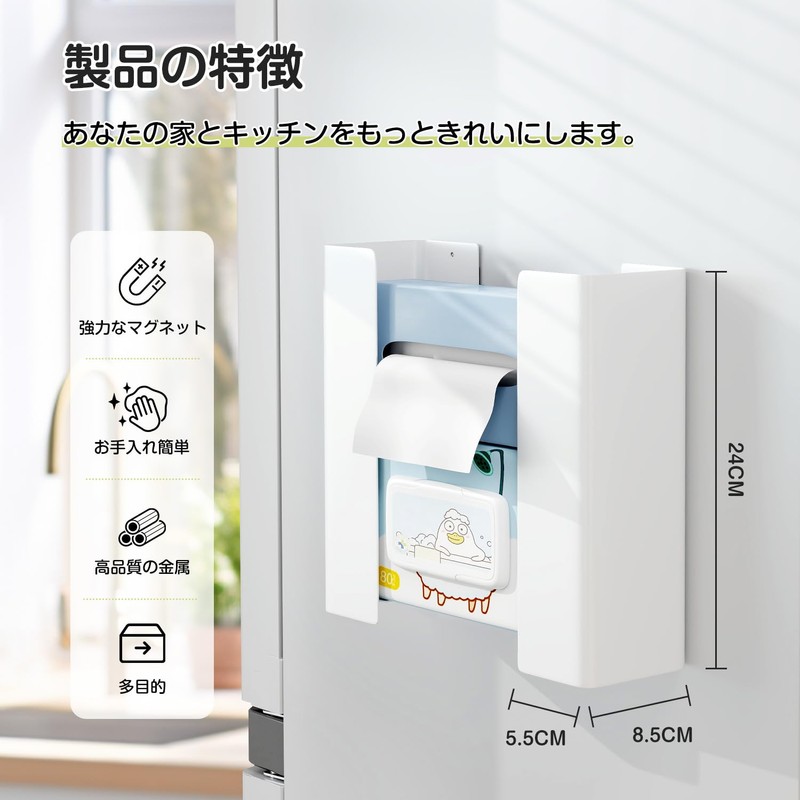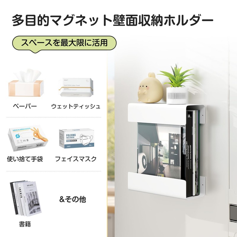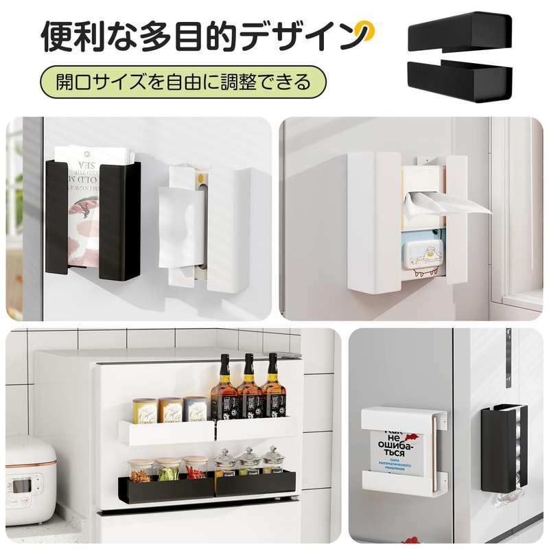 - Widely Applicable: This tissue rack box can be mounted horizontally or vertically and is a multi-functional tissue box that can hold tissues, wipes, gloves, books, magazines, garbage bags, etc. Suitable for metal surfaces such as refrigerator, metal shelf, oven, dishwasher, washing machine etc