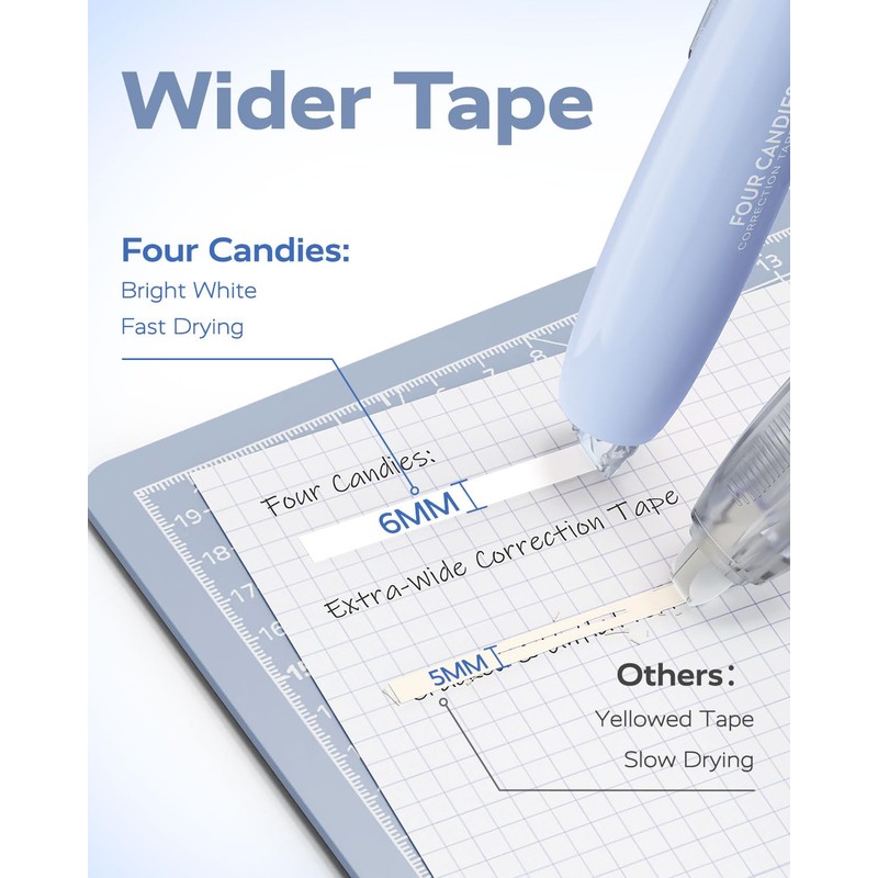 - PERFECT FIT & EASY INSTALLATION – SEAMLESSLY REFILL YOUR WHITE OUT PEN: Designed exclusively for Four Candies correction tape dispensers, these refill cartridges slot in effortlessly—no tools or mess! Just remove the empty core, snap in the new whiteout tape refill, and keep correcting. Compatible with all gradient-colored dispensers