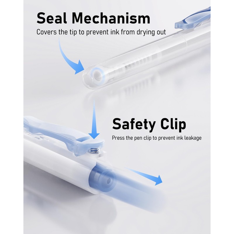 - Premium Quick-Drying Ink: This black ink pen uses premium gel quick-drying ink that dries quickly so the paper doesn't smudge or leak.Each tip is wax sealed to prevent the ink from drying outGreat for left handed people or those who tend to drag their hands while writing