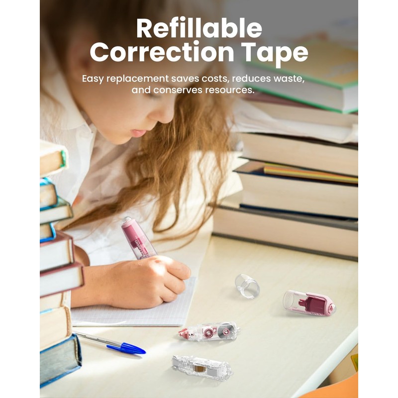 - Refillable Feature: Only replace the inner core after using up the white out tape, without needing to purchase another whole set, Additionally, Each set comes with 4 extra replacement tapes, Extending the lifespan of the white out correction tape even more