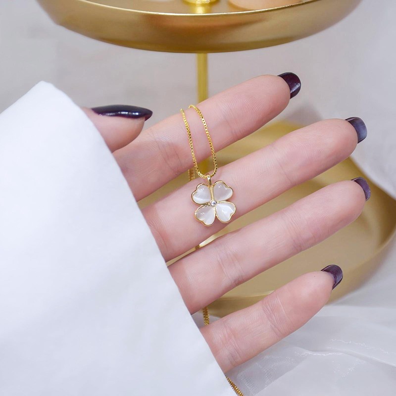 Four Leaf Clover Necklace for Women,Four Leaf White Flower Pendant Necklace, 4 Leaf Lucky Clover Pendant, Ideal Gift for Her