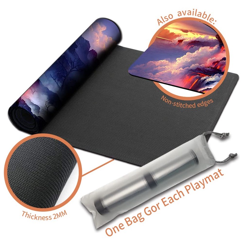 - Built for combat Control your deck with calculated precision. Your TCG play mat has a card friendly polyester top and a non-slip rubber base. Draw, rotate and type cards quickly on a sturdy surface.