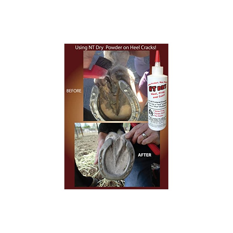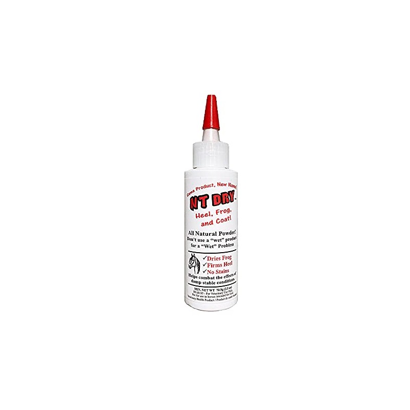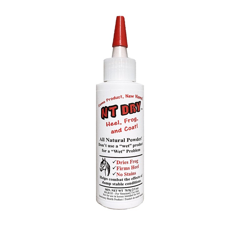 - NATURAL: All-natural NT-Dry is the first-ever “DRY” approach to heel and frog conditions. It is “dusted on” with a thin-tipped squeezable bottle, which provides excellent coverage when dusted and brushed in with a hoof brush. NT-Dry finds the damp, deep places that wet products can’t find.