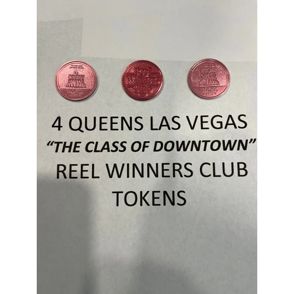 FOUR QUEENS LAS VEGAS CASINO TOKEN. ON ONE SIDE OF THIS METAL TOKEN IS THE FAMOUS FOUR QUEENS LOGO WITH THE SLOGAN BELOW THAT READS “THE CLASS OF DOWNTOWN LAS VEGAS”. THE FLIP SIDE READS “REEL WINNERS CLUB”. ALTHOUGH THREE TOKENS ARE SHOWN IN THE FEATURE PHOTO, THIS LISTING IS FOR ONLY ONE TOKEN. I HAVE A TOTAL OF THREE OF THESE DESIREABLE TOKENS. ALL ARE FOR SALE SEPARATELY. HOWEVER, IF MORE THAN ONE IS PURCHASED AT THE SAME TIME I CAN COMBINE SHIPPING WITH NO ADDITIONAL CHARGE FOR SHIPPING. LISTED SHIPPING CHARGE IS FOR DELIVERIES WITHIN THE 48 STATES. HOWEVER, WE WILL SHIP WORLDWIDE.