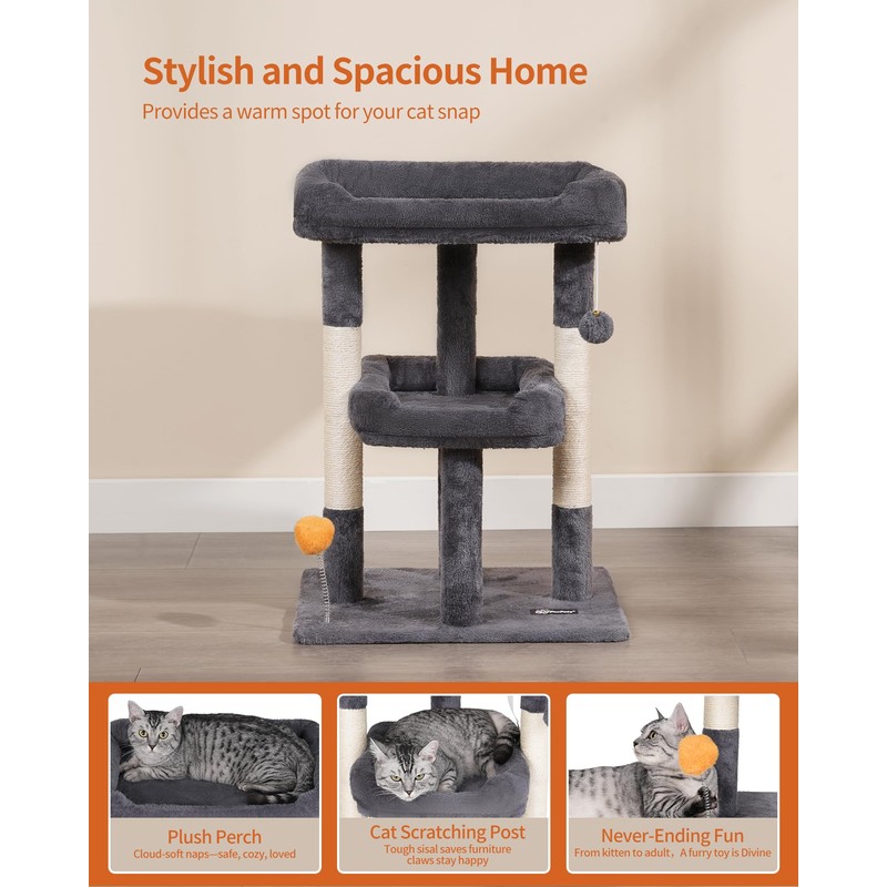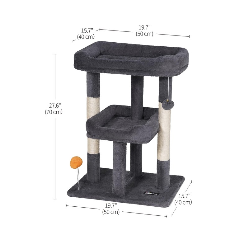 FourFurPets 27.6-Inch Cat Tree, Cat Tower for Indoor Cats, Cat Condo for Large Cats, Small Cat Tree with Scratching Post, Toy Balls, for Kittens, 2 Soft Platform, Dark Gray