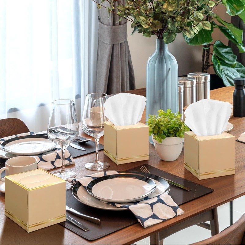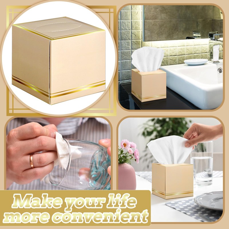- Suitable Size: these facial tissues cases offer just the right size for convenience; The compact box, measuring 3.94 x 3.94 x 3.94 inches, fits snugly on any desk, counter, or car; Tissue paper unfolded measures approximately 7.1 x 7.1 inches / 18 x 18 cm