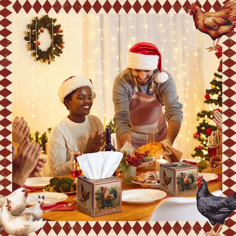 • Farm Vintage Style Design: our cube tissue box features a Christmas farm theme design, accented with chicken in the farm decor; This set of tissue box can enhance the Christmas atmosphere for your home and farmhouse