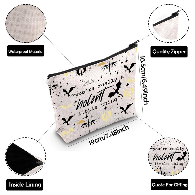Fourth Wing Quote Cosmetic Bag You're Really A Violent Little Thing Makeup Bag with Zipper Bookish Survival Kit (Violet)