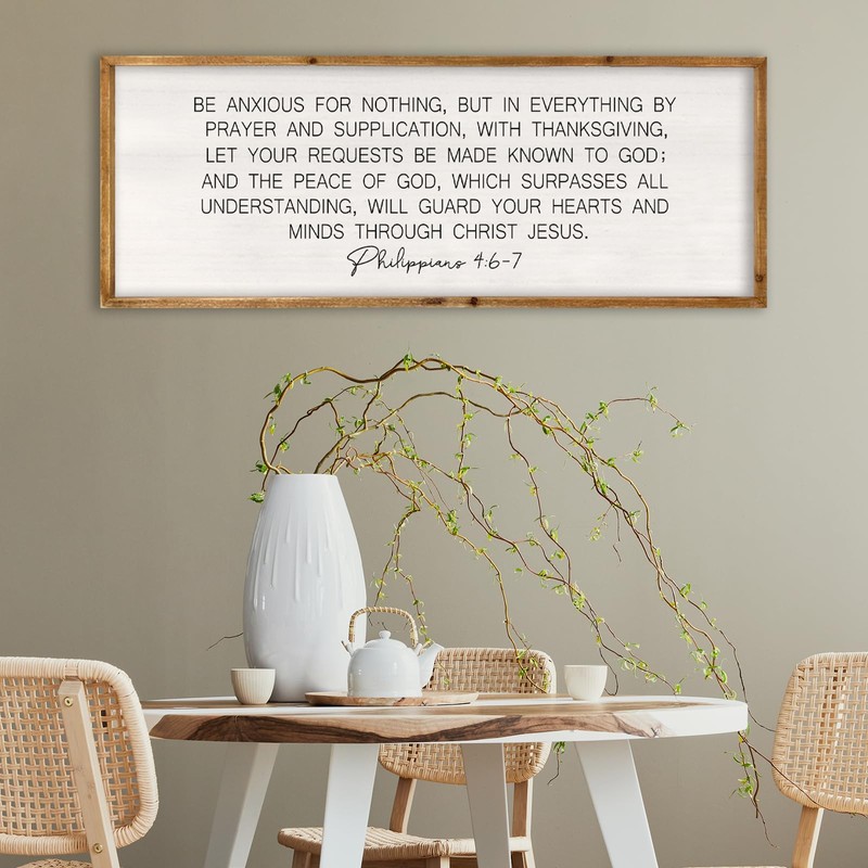 Foutcheou Be Anxious for Nothing Wall Decor 32"×12" Philippians 4:6-7 Bible Verse Christian Wooden Plaque Spiritual Scripture Art Sign (Wood)