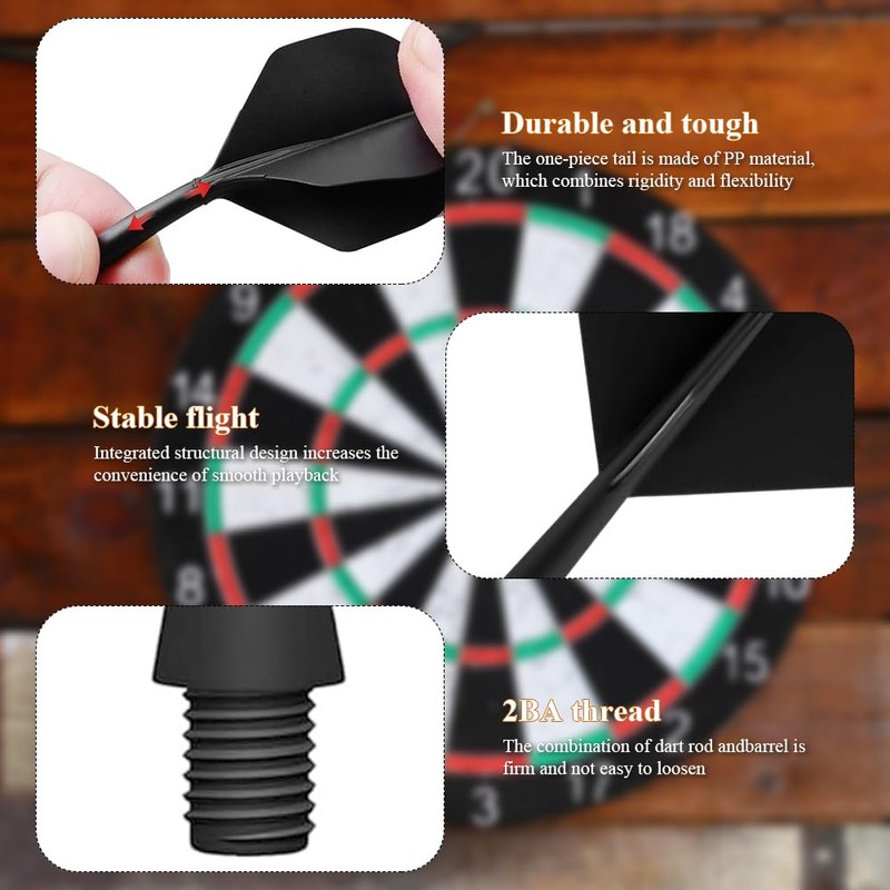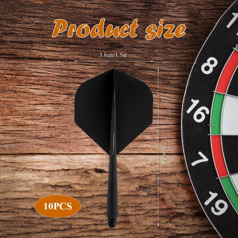Fouvin Pack of 10 Dart Flights with Shafts, Sturdy, Classic Flights, Dart Shafts and Flights Made of One Piece, 10 Stable (Black)
