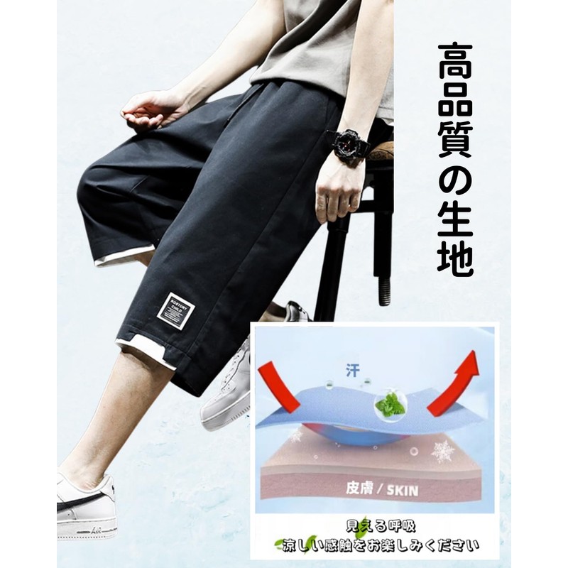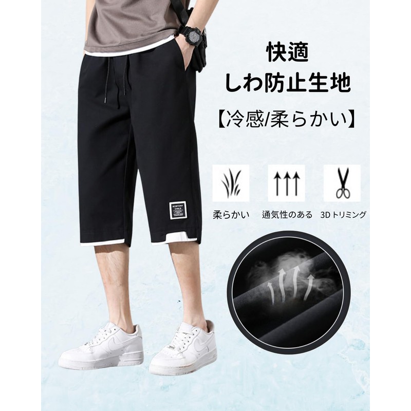 foveitaa Men's Short Pants, Summer, 3/4 Length, Loose Fit, Cargo Pants, Cropped Pants, Large Size, Cool to Touch, Casual, Solid, Comfortable, Cool, Pants, Wide Pants, Shorts, Bottoms, Relaxed, Air