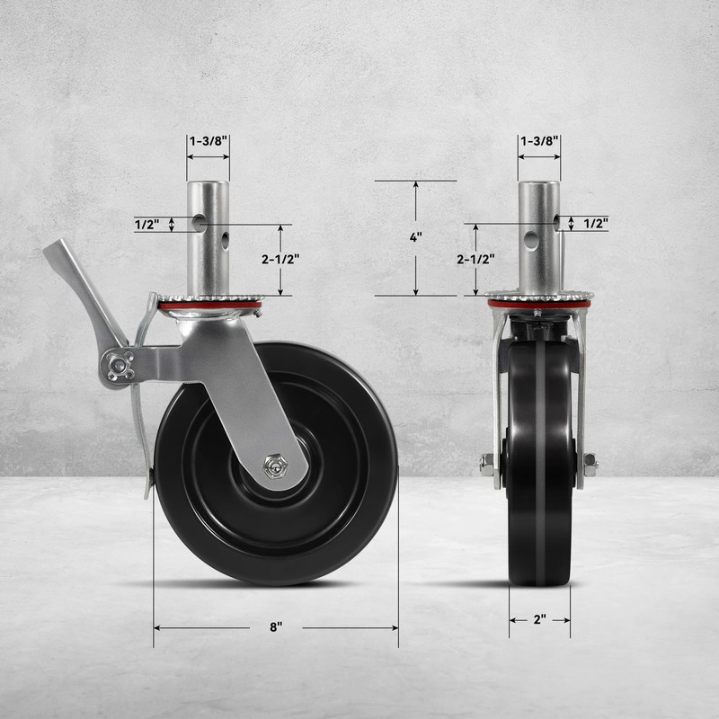 FOVERSWIVE 8"x2" Scaffolding Wheels Set of 4, Load Capacity 4400 Lbs- Phenolic Wheel, Locking Stem Casters with Brake, Replacement for Scaffold, Shelves, Workbench (4 Brake)