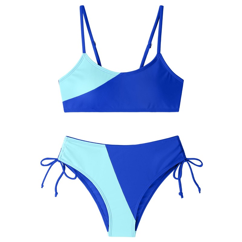 FoWear Girls Swimsuits Bikini Set 2 Pieces Color Block Bikini with Adjustable Shoulder Strap Girls Bathing Suit 7-16Y, Blue-deep, 13-14 Years