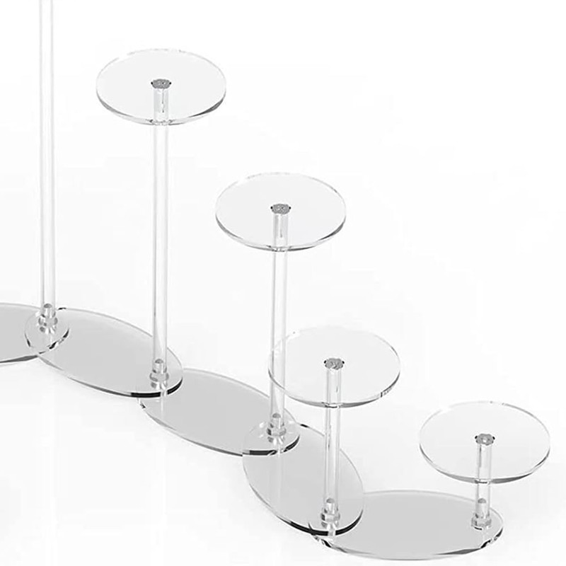 - [Freely Deformable]-This unique and versatile acrylic riser display stand adopts an exclusive rotatable design, you can change the acrylic display stand into any shape you want by adjusting the angle of the bottom oval plate, helping you to fit the needs of any scene.