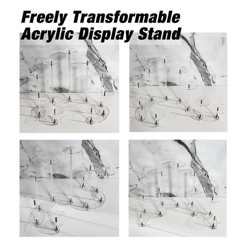Fowecry 9 Tier Transformable Acrylic Display Stand Mini Figures Collectibles Organizer Holder Round Acrylic Cupcake Stand Cupcakes Makeup Jewelry Display