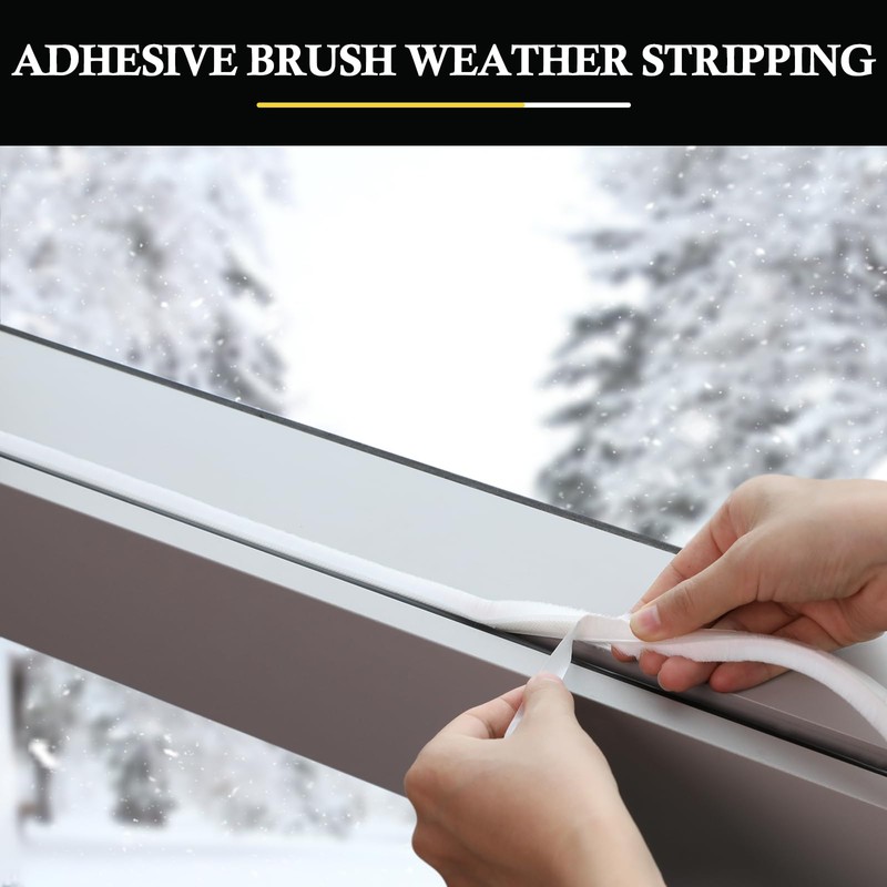 - Adhesive Pile Weather Strip: fowong brush door seal is constructed of woven pile material at 11/32"(adhesive back) x 9/16"(brush length) with high adhesive, not easy to degummed