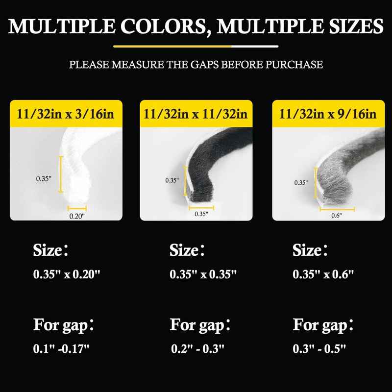 Good quality-Fuzzy weather stripping is High tolerance can be warped without distortion, durable and flexible; High density felt, soft and no harm to your hand. Neatly coiled up in cardboard envelope, not easy to be knotted and straggly. Fine and closely woven, less lint, can stand wear and tear, a longer service life