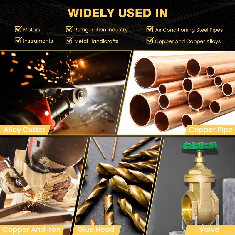 - Wide Application: This BCuP-2 Suitable for resistance brazing, flame brazing, and high-frequency brazing. Copper-phosphorus brazing alloy is suitable for brazing copper and copper alloys, Widely used in refrigeration, home appliances, motors, electrical appliances, instruments and other manufacturing industries