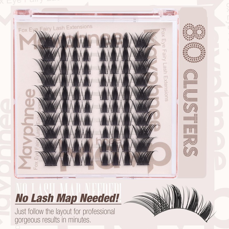 - Pre-Arranged Left & Right Eye Design for Hassle-Free Application: Tired of mismatched lashes clusters ruining your look? Our fox eye lash clusters are thoughtfully pre-arranged for left and right eyes, ensuring a perfect fit for your natural eye shape. With this design, you’ll save time and effort, making it easier to achieve a professional-level, symmetrical fairy fox eye lash extension effect. Perfect for busy mornings or when you’re in a rush.