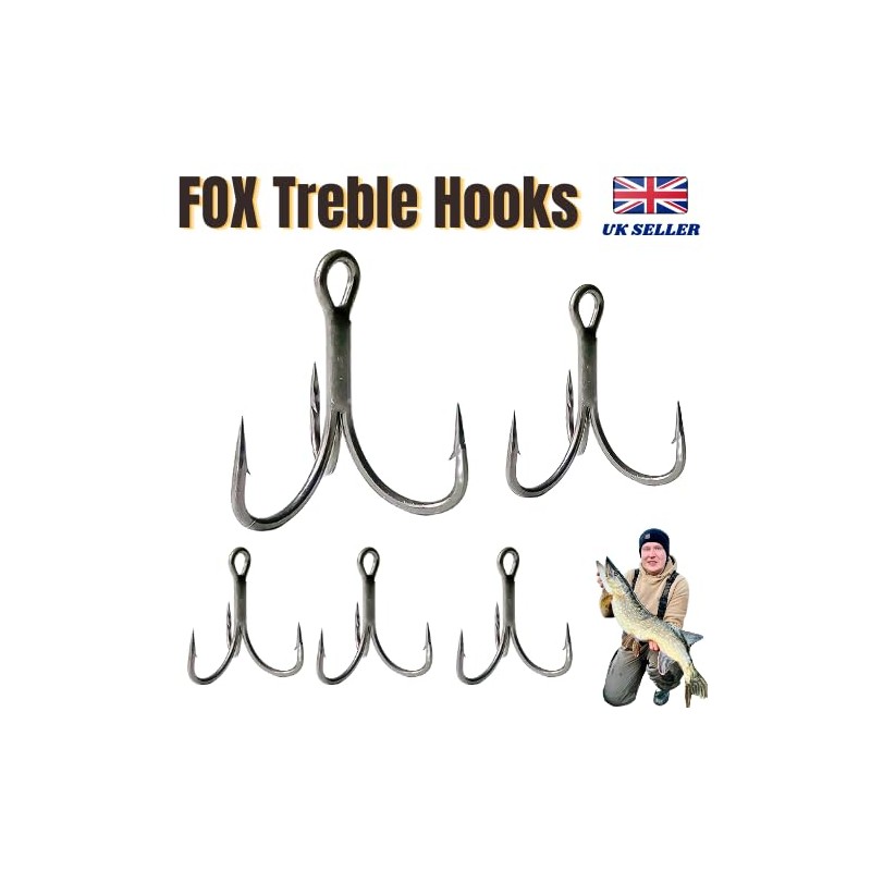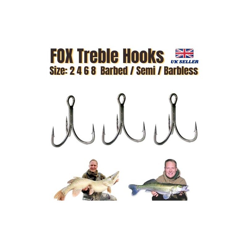 FOX PREDATOR Treble Hooks for Pike Deadbaiting and Lure - BARBED SEMI BARBLESS Size 2 4 6 8 (Barbed, 2)