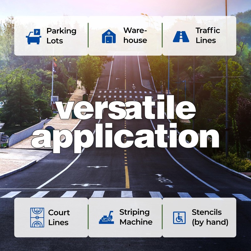 - Durable and Weather-Resistant: Designed for longevity, our parking lot paint withstands harsh weather conditions and heavy traffic. Parking lot striping paint offers strong adhesion to various surfaces, ensuring bright, clear markings for high-traffic areas. Ideal for sidewalks, driveways, and parking lots, this high-performance paint guarantees long-lasting visibility and durability.