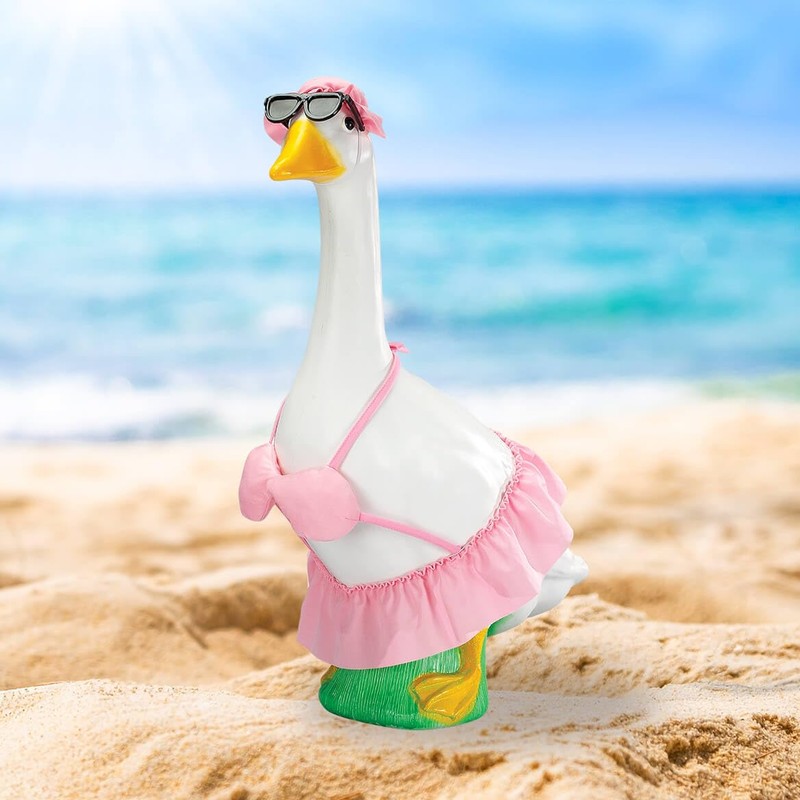 - Playful Design: Take a gander at the itsy, bitsy, teeny-weeny, little pink goose bikini—complete with a sun hat and classic summer shades! This delightful outfit will make your garden goose the star of any pool party, summer barbecue, or vacation celebration.