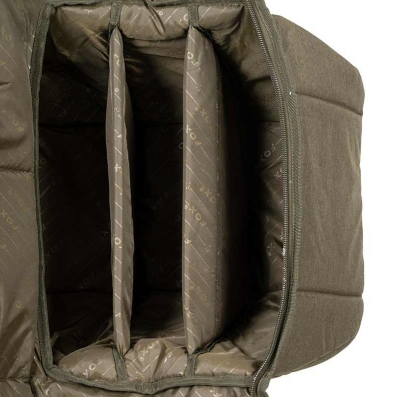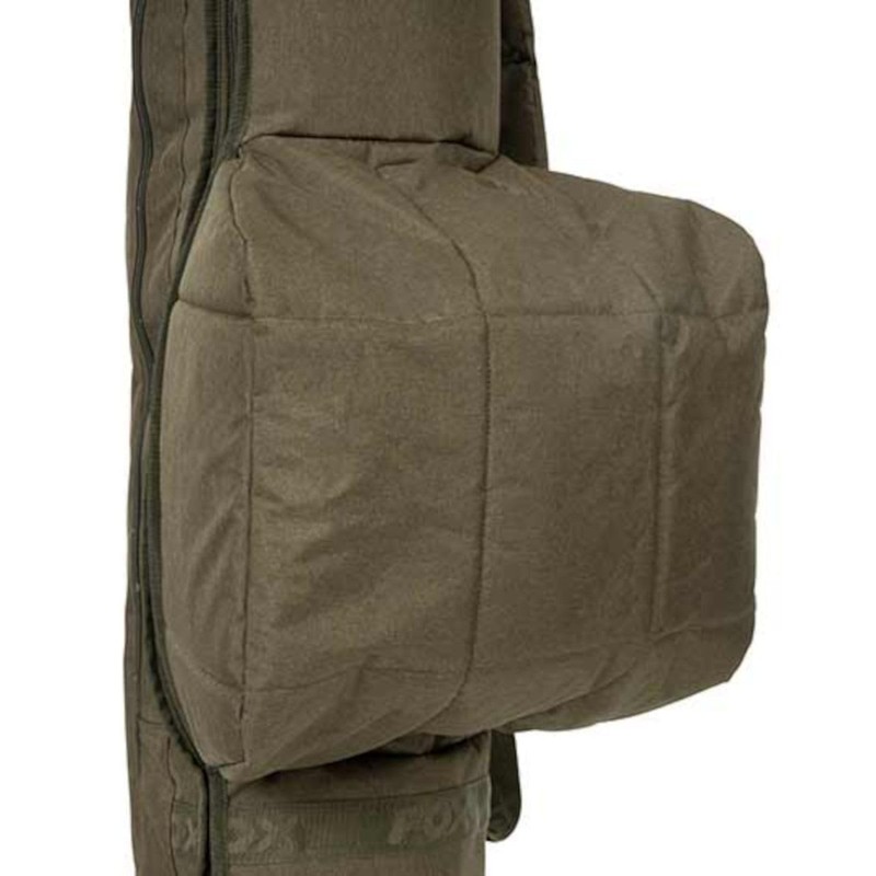 Fox Voyager 12 ft 3-rod case - Very convenient to safely transport up to 3 equipped rods - Dimensions: 196 cm x 31 cm - Outer material: 100% polyester, Filling: 70% polyethylene/30% polyurethane, Lining: 100% polyester - Aluminium reinforcement on the back of the case - Padded and reversible shoulder strap - Material: 300D Polyester Treated, wear-resistant and water-resistant - Spacious external three-quarter zip pocket for landing nets and banksticks - Perfectly formed Velcro rod attachments with ergonomic rubber tabs for ease of use - Heavy duty 10mm dual zippers for complete reliability - Fully padded and equipped with a large center divider for complete protection of your rods - Specially shaped profile with room for rings of 1.96 9" and reels big pitLovely case for the safe transport and storage of 3 rigged fishing rods. The rods can be securely attached and are additionally protected by the aluminium reinforcement and the full lining. The water-resistant material ensures the cover is durable and easy to maintain.