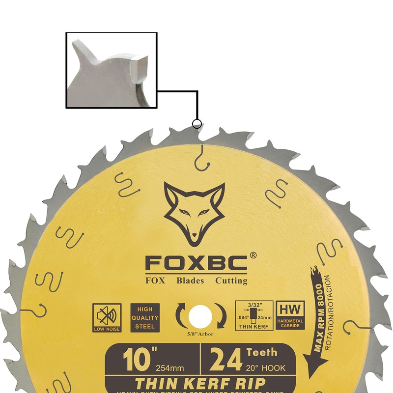 FOXBC 10-Inch Thin Kerf Ripping Table Saw Blade for Wood Cutting, 24-Tooth ATB, 5/8-Inch Arbor