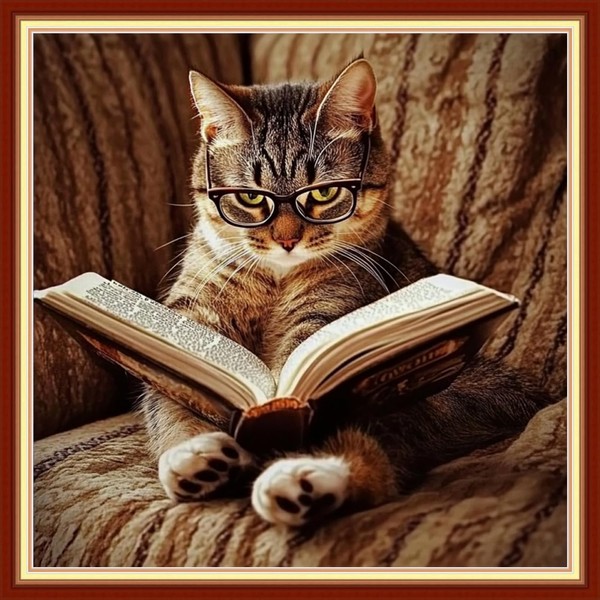 Foxdiviy Stamped Cross Stitch Kits for Beginners Full Range of Cross Stitching 11 CT Printed Cross Stitch Kits for Kids Adults Cross Stitch Patterns Needlepoint Kits-Cat Reading 18x18 inch