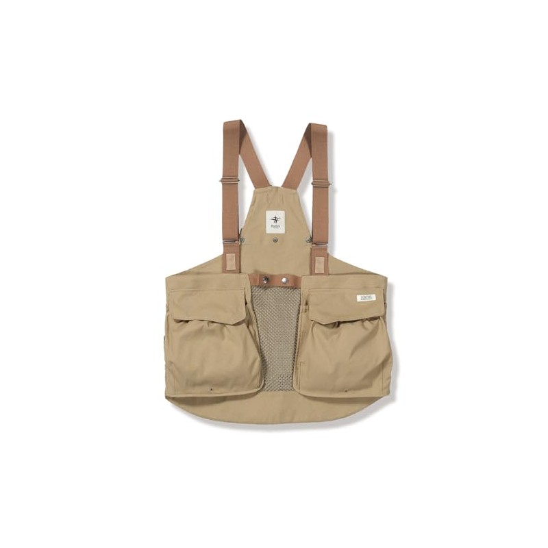 - Simple and easy to use tackle vest. The front features a large flap pocket (2 interior air chambers), a functional pocket on the back of the front, and a large game pocket and bottle holder on the back. It has more storage capacity than it appears, making it convenient for camping and gardening besides fishing. Dot buttons on each pocket feature finger through dots for easy and secure opening The main material is made of cotton-like cross-sectional polyester for a classic look, yet lightweight and low water absorption, making it highly practical in the field. In addition, the back is made of mesh for breathability and durability. ■Weight: 19.4 oz (550 g)