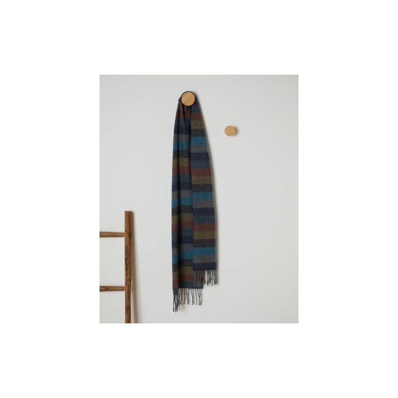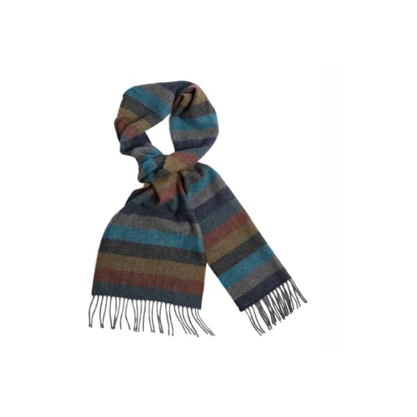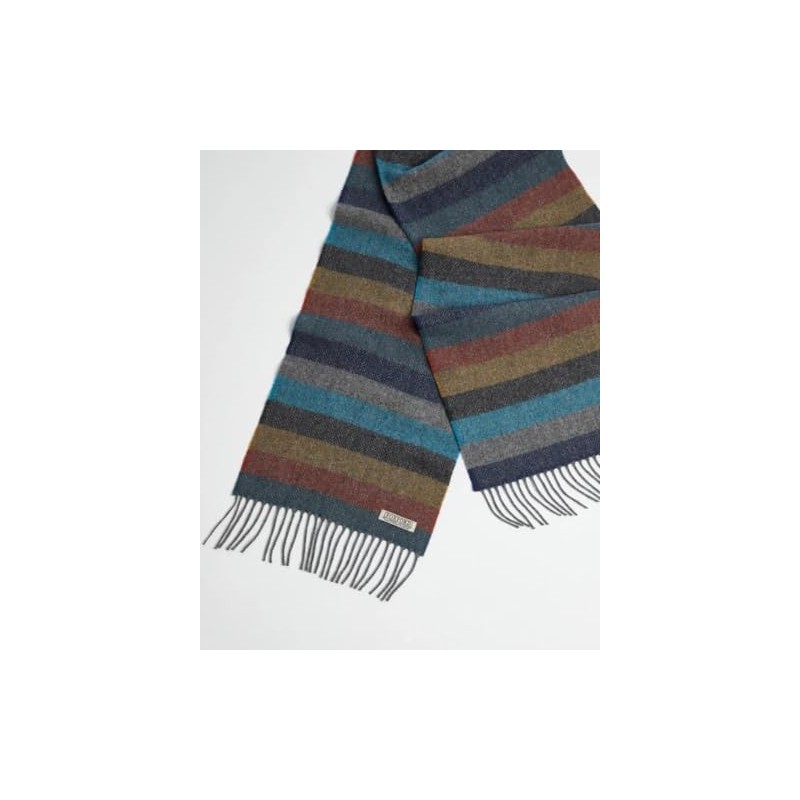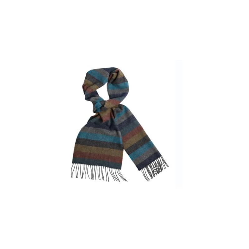 Foxford Scarf, Lambswool 82 x 12 inches, Made in Ireland, Roll Fringe (Multi Stripe)