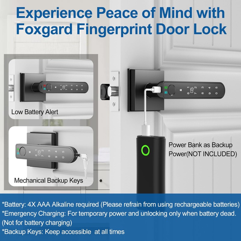 - 【Seamless Voice Control and Remote Access】When paired with the Foxgard Gateway (sold separately), enhance your smart home setup with voice control via Alexa or Google Assistant. Manage your biometric door knob from anywhere using the Tuya Smart App, giving you complete control over your property's access.