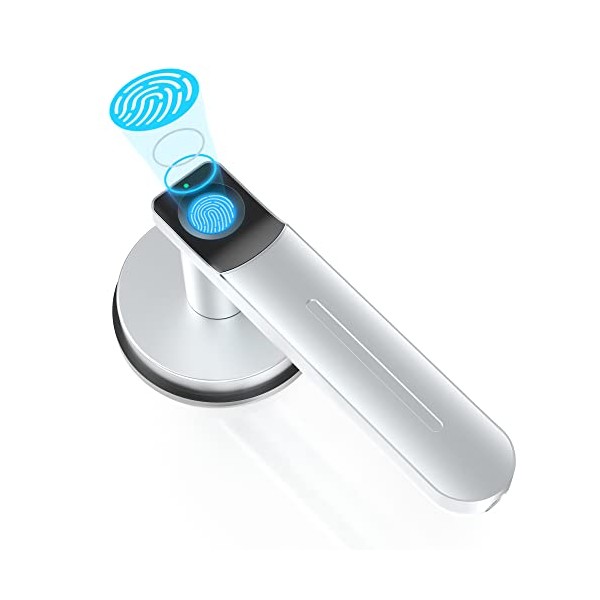 Foxgard Smart Fingerprint Door Lock,Keyless Entry Door Lock with Handle,Biometric Door Lock,Room Door Lock for Home/Storage /Bedroom/Office and Other Private Spaces (Silver)