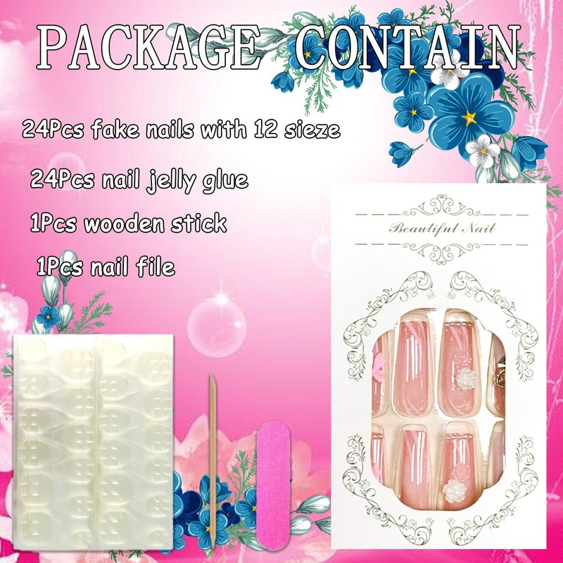 - Eye-catching Design: Beautiful extra long square french false nails with resin floral bow pearl and gems designs that will make you stand out in any occasion.