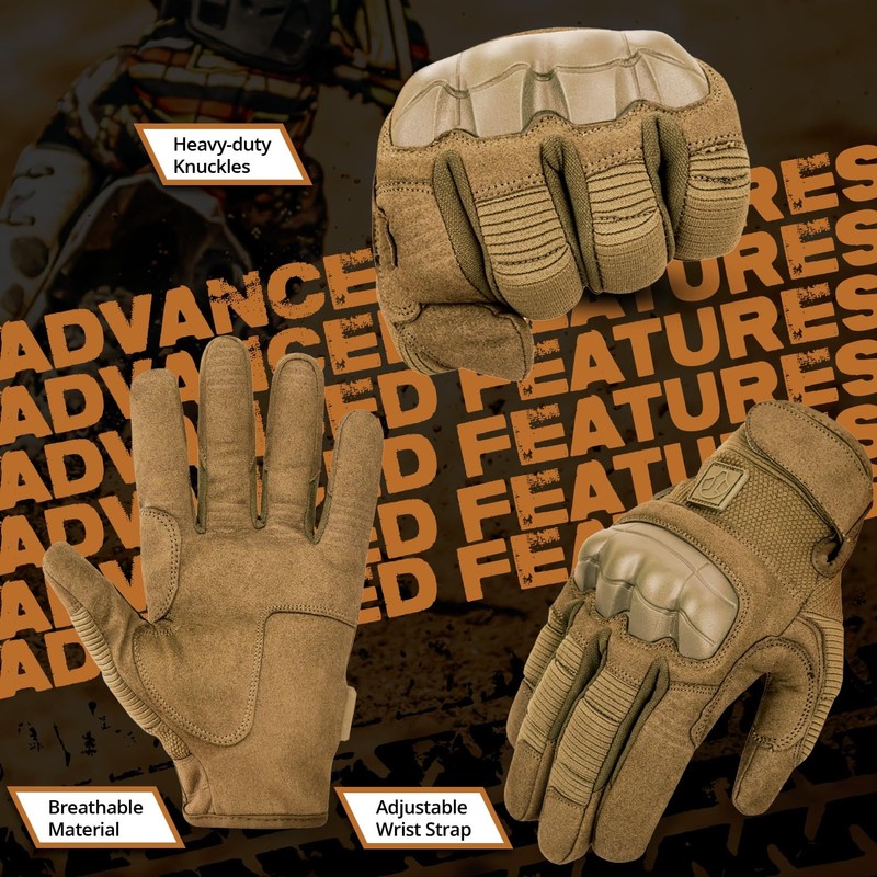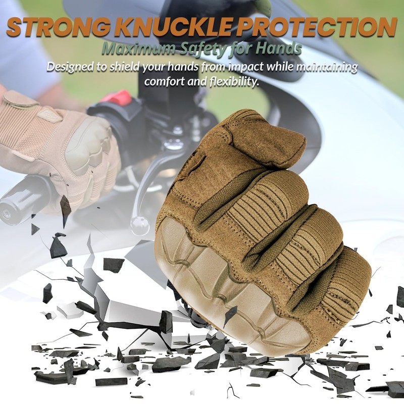 FOXKULL Tactical Gloves for Men, Touchscreen Motorcycle Gloves with Hard Shield & Palm Pads for Motorcycle Cycling Tactical Training Airsoft (BROWN, Medium)